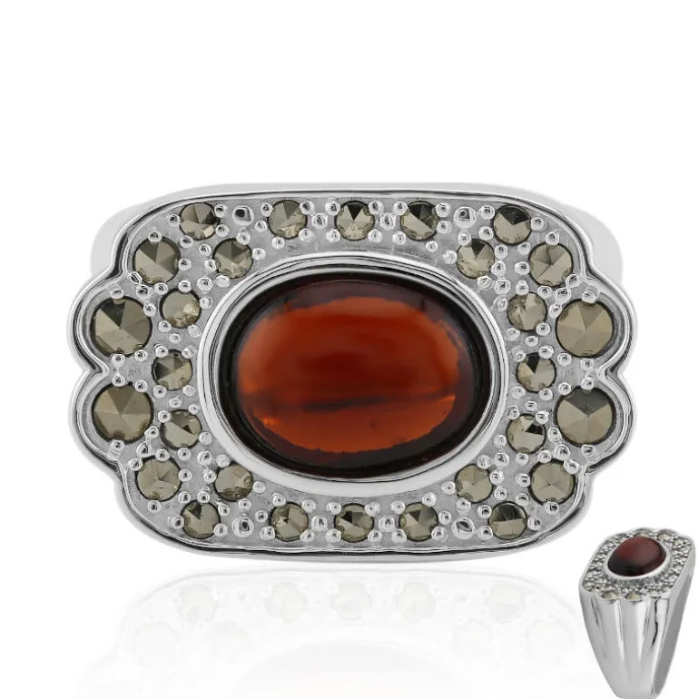 Dieser exquisite Ring ist mit einem zentralen ovalen Mosambik-Granat von 2 Karat besetzt, der von einer Reihe funkelnder Markasite aus Rumänien umrahmt wird. Gegossen in feinem 925er Sterlingsilber mit einem Gewicht von ca. 6,4 g, ist dieses Stück sowohl substanziell als auch elegant. Mit einem Gesamtkaratgewicht von 2,5 ct ist es das ideale Accessoire, um jedem Outfit einen raffinierten Touch zu verleihen. Egal, ob Sie sich für einen besonderen Anlass herausputzen oder Ihrem Alltagsoutfit einen Hauch von Glamour verleihen, dieser Ring wird Sie begeistern.