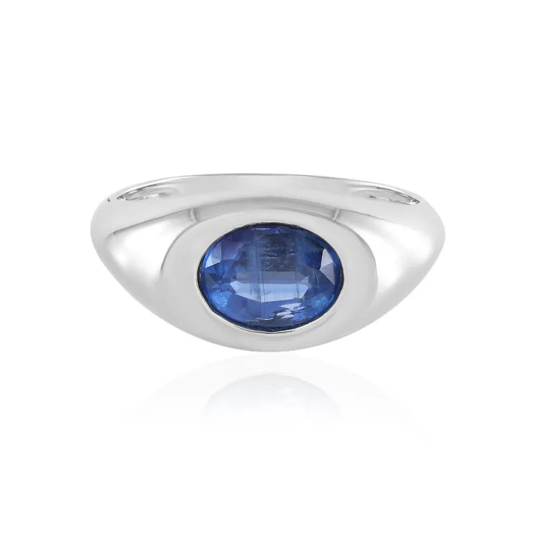 Entdecken Sie die fesselnde Anziehungskraft dieses Statement-Rings mit einem makellosen nepalesischen Kyanit von 1,4 Karat, eingefasst in den Glanz von platiniertem 925er Sterlingsilber. Der oval geschliffene Edelstein strahlt einen faszinierenden tiefblauen Farbton aus, der ihn zu einem auffälligen Mittelpunkt macht. Das moderne und schlichte Design des Rings unterstreicht seine glänzende Ausstrahlung und verleiht jedem Ensemble einen Hauch von Raffinesse. Dieser Ring eignet sich ideal für Abendveranstaltungen oder als unverwechselbares Accessoire für den Tag und wird zu einem begehrten Bestandteil Ihrer Sammlung.
