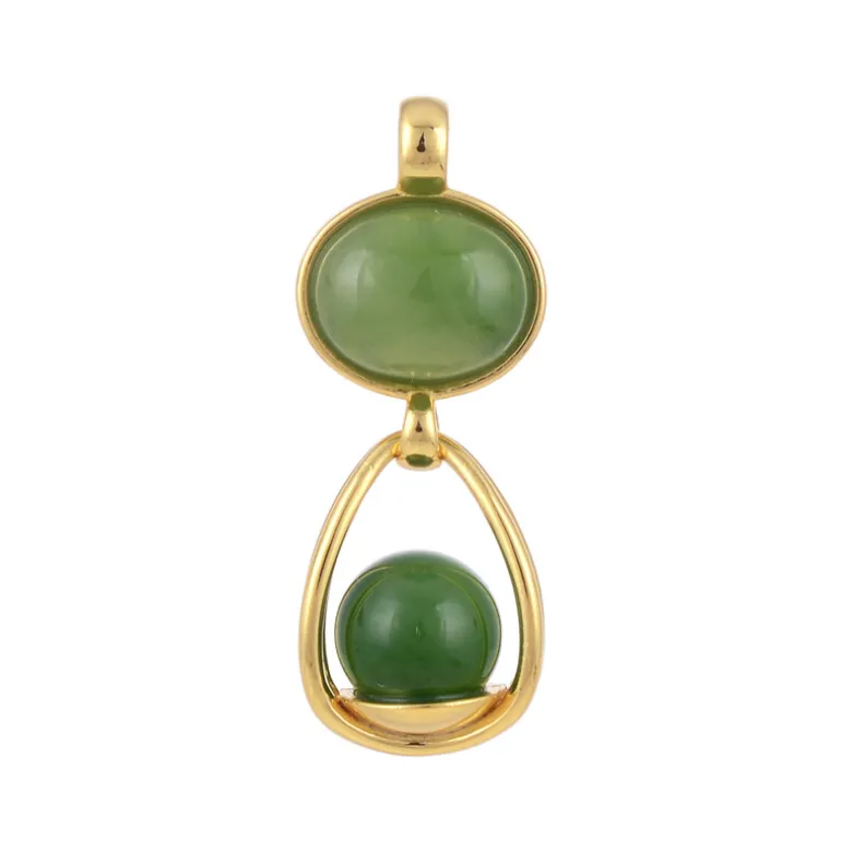 Lassen Sie sich von der natürlichen Schönheit Kanadas mit diesem bezaubernden Anhänger verzaubern, der 6,2 Karat polierten Nephrit in einer eleganten Fassung aus vergoldetem Sterlingsilber präsentiert. Der Anhänger besteht aus einem ovalen Cabochon und einer runden Perle aus leuchtend grünem Nephrit, die sich harmonisch zu einem faszinierenden und raffinierten Schmuckstück zusammenfügen. Dieses Schmuckstück eignet sich perfekt, um dem Alltag einen Hauch von Anmut zu verleihen oder ein abendliches Ensemble zu ergänzen und wird zu einem geschätzten Teil Ihrer Sammlung.