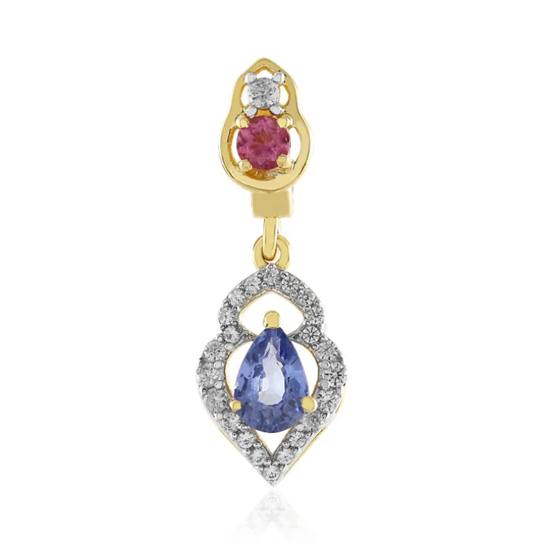 Ceylon Blauer Saphir & Rosa Turmalin Anhänger, vergoldetes Silber