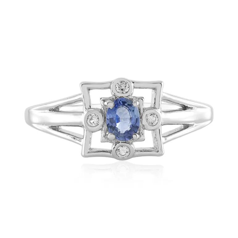Entdecken Sie die Faszination dieses exquisiten Rings mit blauem Ceylon-Saphir. Mit einem unerhitzten Saphir aus Sri Lanka, der von vier strahlend weißen Saphiren aus Madagaskar ergänzt wird, strahlt der Ring Eleganz aus. Der Ring aus platiniertem 925er Sterlingsilber eignet sich sowohl für den eleganten Auftritt am Tag als auch für den glamourösen Auftritt am Abend und ist damit eine tadellose Wahl für jeden Anlass.