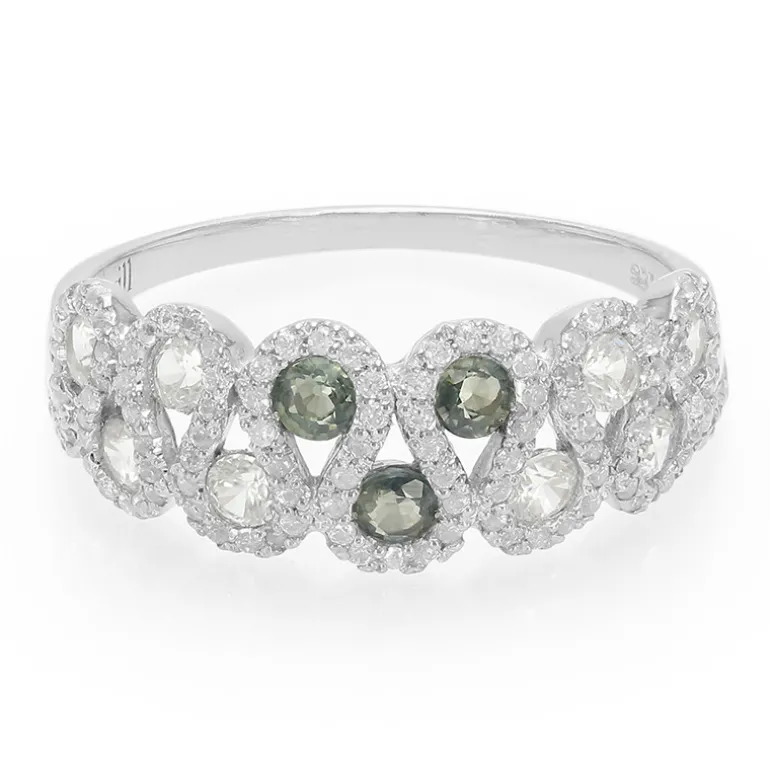 Grüner Saphir & Zirkon Silber Ring