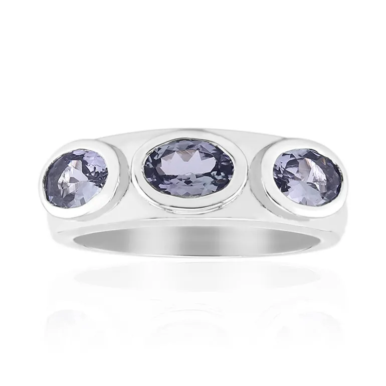 Dieser erhabene Ring aus 925er Sterlingsilber präsentiert ein Trio aus unerhitzten Tansaniten im Ovalschliff, die jeweils in einem faszinierenden Violettton erstrahlen. Die aus den berühmten Minen Tansanias stammenden Edelsteine mit einem Gesamtgewicht von 1,148 Karat sind wunderschön gefasst und bilden ein makelloses Schmuckstück. Das kräftige Silberband bildet einen modernen Hintergrund für die Steine, der ihren natürlichen Glanz noch unterstreicht. Dieser Ring eignet sich sowohl für den eleganten Alltag als auch für besondere Anlässe und verleiht jedem Outfit einen Hauch von Raffinesse.