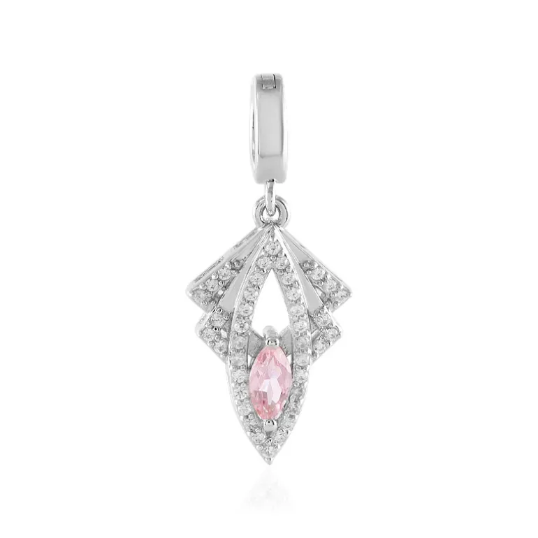 Legen Sie sich diesen eleganten Anhänger aus platiniertem 925er Sterlingsilber um den Hals. Ein nigerianischer rosa Turmalin im Marquiseschliff schmiegt sich an 38 funkelnde kambodschanische Zirkone im Rundschliff. Dieser Schatz mit einem Gesamtgewicht von 0,451 Karat verbindet moderne Raffinesse mit einem Hauch von Farbe. Das zarte, vom Art déco inspirierte Design ist vielseitig genug, um Ihre Alltagsgarderobe zu schmücken oder der Abendgarderobe einen charmanten Touch zu verleihen.