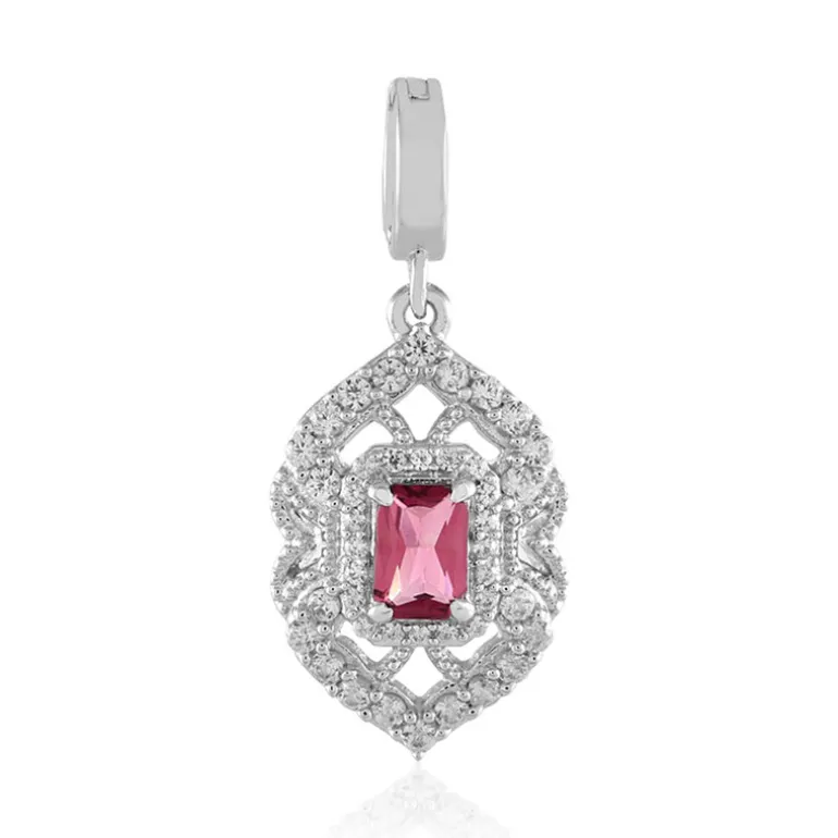 Entdecken Sie die Eleganz dieses exquisiten Anhängers mit nigerianischem rosa Turmalin. In Sterlingsilber gefasst, ist der lebhafte Edelstein wunderschön in ein zartes Design eingefasst, das ein auffallendes Stück für jeden Anlass schafft. Dieser Anhänger eignet sich ideal für die Abendgarderobe oder als Statement zu legeren Outfits und ist eine vielseitige Ergänzung zu Ihrer Schmucksammlung. Der Varioclip sorgt für Leichtigkeit und Stil.
