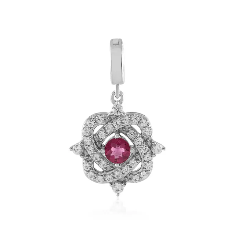 Entdecken Sie die Anziehungskraft dieses kunstvollen Silberanhängers mit einem faszinierenden rosafarbenen Turmalin aus Nigeria, der elegant in seinem Herzen platziert ist. Sein kompliziertes Design und sein funkelndes Aussehen machen ihn zu einer idealen Wahl, um Ihrem Ensemble einen Hauch von Luxus zu verleihen. Dieser Anhänger eignet sich sowohl für einen legeren Brunch als auch für eine formelle Abendveranstaltung und ergänzt mit seinem zeitlosen Charme eine Vielzahl von Outfits. Schmücken Sie Ihr Dekolleté mit diesem Schmuckstück und lassen Sie den pulsierenden rosa Turmalin zum Gesprächsthema werden.