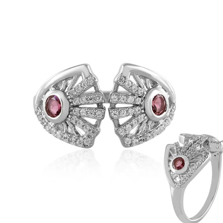 Entdecken Sie einen Hauch von Eleganz mit diesem schicken nigerianischen rosa Turmalin-Silberring. Zwei strahlende rosafarbene Turmaline aus Nigeria mit einem Gesamtgewicht von 0,304 Karat bilden das Herzstück dieses Designs. Diese Edelsteine werden von zweiundfünfzig schimmernden Zirkonen aus Kambodscha umgeben, die dem Schmuckstück eine schillernde Note verleihen. Der Ring selbst ist aus 925er Sterlingsilber gefertigt und mit einer hochwertigen Platinbeschichtung versehen, die für Langlebigkeit und zusätzlichen Glanz sorgt. Mit einem Gesamtkaratgewicht von 0,654 und einer Größe von 21×20 mm ist dieser Ring ein raffiniertes Statement. Er eignet sich perfekt für die Abendgarderobe oder setzt einen romantischen Akzent in Ihrem Tagesoutfit und ist eine vielseitige Ergänzung für jede Schmucksammlung.