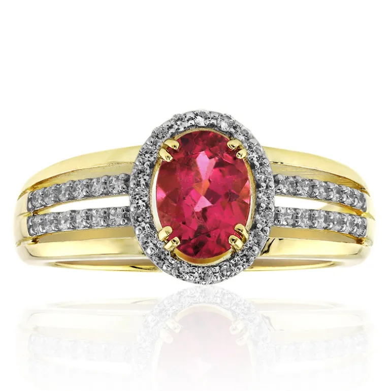 Dieser atemberaubende Ring aus 9-karätigem Gold glänzt mit einem luxuriösen nigerianischen Rubin-Turmalin in der Mitte, der ein Gewicht von 0,655 Karat und einen klassischen ovalen Schliff aufweist. Das Design wird durch 44 Zirkone im Rundschliff aus Tansania vervollständigt, die einen schimmernden Kontrast zum tiefroten Farbton des Turmalins bilden. Dieses exquisite Schmuckstück aus ca. 2,91 Gramm Feingold ist ein Beweis für Eleganz und Raffinesse und eignet sich perfekt, um Ihrer Abendgarderobe einen Hauch von Glamour zu verleihen oder bei besonderen Anlässen ein mutiges Statement abzugeben.