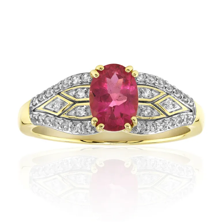 Entdecken Sie die Faszination dieses prächtigen Rings mit einem lebhaften nigerianischen Rubin-Turmalin im Ovalschliff von 0,655 Karat, der exquisit in glänzendes 9K-Gold gefasst ist. Der zentrale Edelstein wird von einem Halo aus 34 funkelnden Zirkonen im Rundschliff aus Tansania mit einem Gesamtgewicht von 0,208 ct umrahmt, die dem Design zusätzliche Brillanz verleihen. Das Goldband mit einem Gewicht von ca. 1,88 g ergänzt die kräftigen Rosatöne des Turmalins und sorgt für einen bezaubernden Look. Dieser Ring ist ideal für besondere Anlässe oder für den Alltag. Er ist eine wertvolle Ergänzung für jede Schmucksammlung.