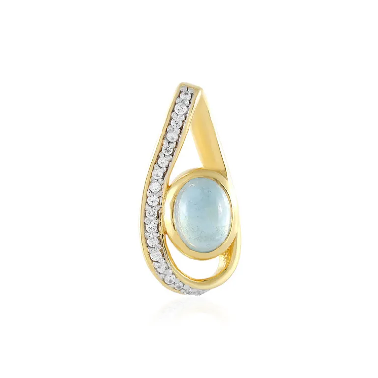Entdecken Sie die ruhige Schönheit dieses vergoldeten Anhängers aus Sterlingsilber mit einem fesselnden 1,226-karätigen Ofiki-Aquamarin-Cabochon aus Nigeria, der von einem glitzernden Heiligenschein aus funkelnden Zirkonen umgeben ist. Das ausgeprägte tropfenförmige Design mit den Maßen 23×11 mm ist modern und doch zeitlos und macht ihn zu einem idealen Accessoire für eine Vielzahl von Anlässen. Dieser Anhänger passt perfekt zu eleganter Abendgarderobe oder verleiht Ihrem Freizeitoutfit einen Hauch von Luxus. Er ist eine vielseitige Ergänzung Ihrer Schmucksammlung.