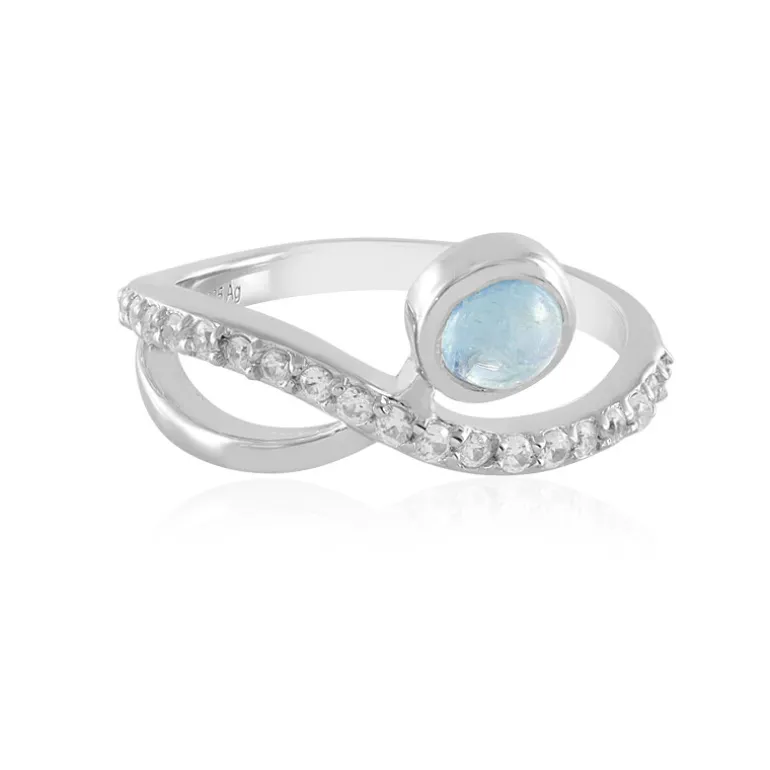 Umarmen Sie die ruhige Schönheit des Meeres mit diesem atemberaubenden Ring mit einem 0,541ct Nigerian Ofiki Aquamarin. Der runde Cabochon-Edelstein, der in ruhige Blautöne getaucht ist, wird durch eine Reihe funkelnder Zirkone von insgesamt 0,385 ct ergänzt. Dieses Schmuckstück aus platiniertem 925er Sterlingsilber strahlt Raffinesse aus. Perfekt, um dem Alltagsoutfit einen Hauch von Eleganz zu verleihen oder als bezaubernder Begleiter für besondere Anlässe.