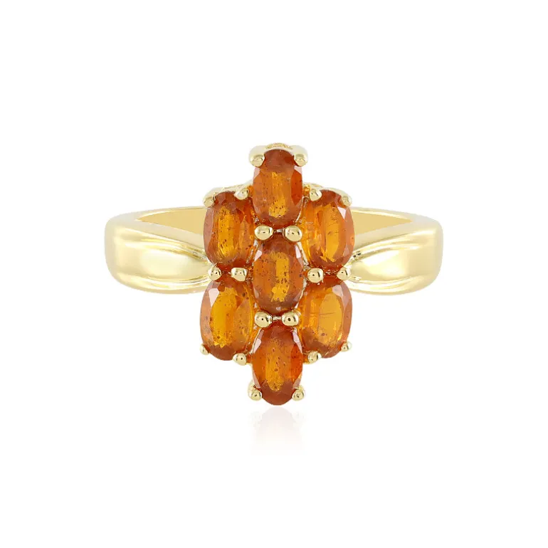 Dieser Ring aus vergoldetem 925er Sterlingsilber strahlt die Wärme eines Sonnenuntergangs aus und besticht durch sieben orangefarbene Kyanit-Edelsteine aus Tansania im Ovalschliff mit insgesamt 1,924 Karat. Die leuchtenden Farben erinnern an einen ruhigen Himmel in der Abenddämmerung und machen diesen Ring zu einem perfekten Accessoire für Tag- und Nacht-Outfits. Sein unwiderstehlicher Charme wird durch die sorgfältige Vergoldung über Sterlingsilber noch verstärkt und verleiht ihm eine Aura von schlichter Eleganz, die zu jedem Anlass passt. Kombinieren Sie diesen Ring mit Erdtönen oder kontrastieren Sie ihn mit kühlen Blautönen für einen auffälligen Auftritt.