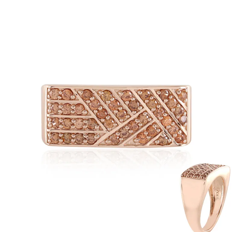 Entdecken Sie die Faszination der kambodschanischen Zirkone mit diesem modernen Ring aus rosévergoldetem Sterlingsilber. Die 40 orangefarbenen Zirkone im Rundschliff mit einem Gesamtgewicht von 0,72 Karat strahlen in ihrer sorgfältigen Anordnung in einem warmen Licht. Das schicke Design mit den Maßen 22×21 mm zeigt ein kunstvolles Chevron-Muster, das sowohl im Business- als auch im Freizeitbereich für einen Hauch von Raffinesse sorgt. Dieser Ring von KM by Juwelo verkörpert sowohl Anmut als auch Stil und ist somit eine unverzichtbare Ergänzung Ihrer Schmucksammlung.
