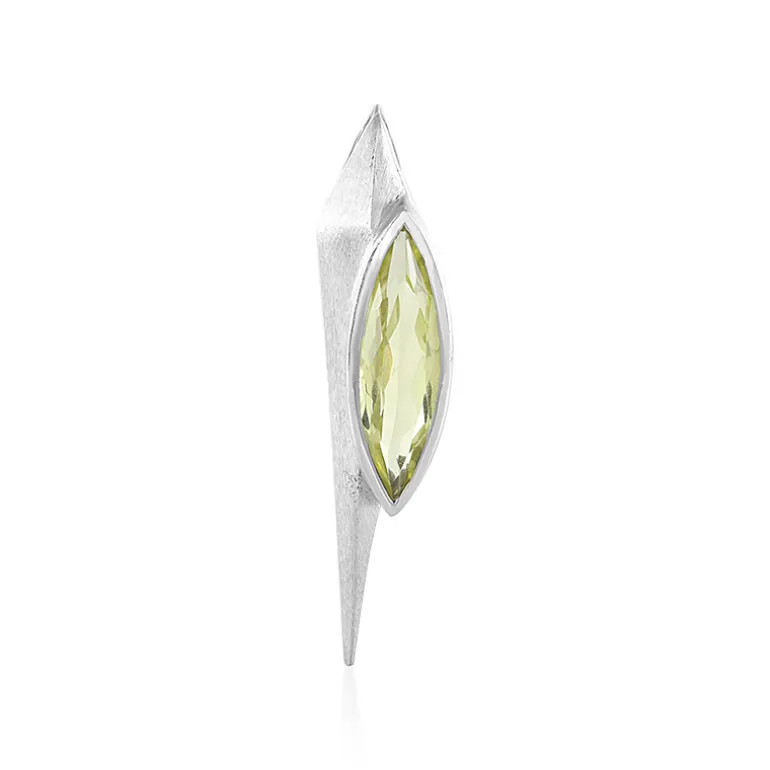 Dieser Anhänger aus der MONOSONO COLLECTION besticht durch einen leuchtenden Ouro-Verde-Quarz im Marquise-Schliff aus Brasilien mit 2,636 Karat leuchtender Farbe, umhüllt von platiniertem 925er Sterlingsilber. Der Anhänger mit einer Größe von 41 x 10 mm zieht das Licht und die Aufmerksamkeit auf sich und ist ein elegantes und modernes Statement. Sein einzigartiges Design verleiht sowohl Tages- als auch Abendgarderobe einen Hauch von raffinierter Eleganz und verleiht dem klassischen Charme eine moderne Note.