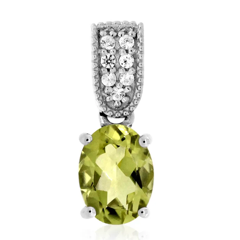 Dieser lebhafte Anhänger präsentiert einen atemberaubenden brasilianischen Ouro-Verde-Quarz von 0,949 Karat mit ovalem Schliff, der einen sonnigen, zitronengelben Farbton ausstrahlt. Umhüllt von 925er Sterlingsilber und geschmückt mit funkelnden kambodschanischen Zirkon-Akzenten von insgesamt 0,083ct, verleiht dieses Stück jedem Outfit einen Hauch von Eleganz. Mit einer Größe von ca. 16×6 mm ist es ein auffälliges Accessoire, das sich perfekt für Cocktail-Events oder den Alltag eignet.
