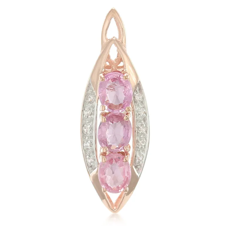 Entdecken Sie die Anziehungskraft dieses raffinierten Anhängers aus rosévergoldetem 925er Sterlingsilber, der ein Dreigestirn von bezaubernden Padparadscha-Saphiren im Ovalschliff aus Sri Lanka präsentiert. Mit einem Gesamtgewicht von 1,01 ct strahlen diese Edelsteine einen bezaubernden pfirsichrosa Farbton aus, der selten und begehrt ist. Um die Saphire herum funkeln 10 kambodschanische Zirkonsteine, die einen exquisiten Kontrast bilden. Ein vielseitiges Accessoire, das sowohl der Berufskleidung als auch der Abendgarderobe einen Hauch von Eleganz verleiht.