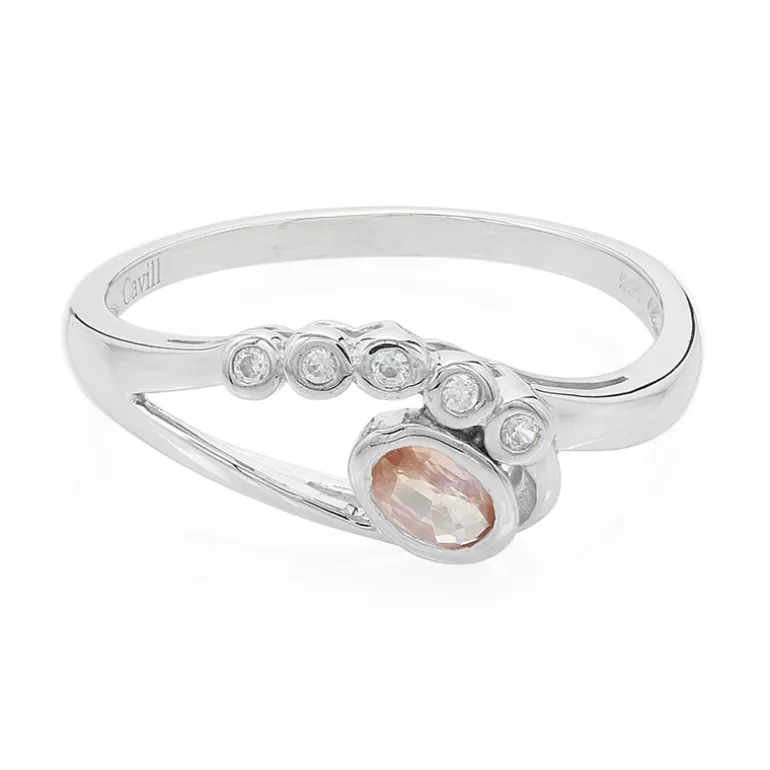 Entdecken Sie die Faszination des Padparadscha-Saphir-Silberrings mit einem atemberaubenden 0,22-karätigen Saphir im Ovalschliff aus Sri Lanka. Begleitet von fünf runden Zirkonen im Brillantschliff aus Kambodscha, strahlt dieses Schmuckstück Eleganz aus. Es ist aus rhodiniertem 925er Sterlingsilber gefertigt und eignet sich perfekt für abendliche Soirées oder raffinierte Tageskleidung. Kombinieren Sie ihn mit einem klassischen schwarzen Kleid oder einem schicken Freizeitoutfit für zeitlose Raffinesse.