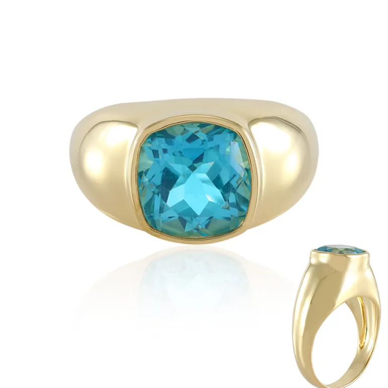Lassen Sie sich vom Glanz dieses bezaubernden Rings mit brasilianischem Paraiba-Topas verzaubern. Ein beachtlicher Stein von 4,729 Karat im antiken Kissenschliff schmiegt sich in die glänzende Umarmung aus 925er Sterlingsilber, das für einen zusätzlichen Hauch von Eleganz großzügig vergoldet wurde. Der kühne blaue Edelstein mit einer Größe von ca. 10 mm steht im Mittelpunkt einer 6,22 g schweren goldenen Silhouette und ist ein auffälliges Schmuckstück. Dieser Ring ist sowohl für den Alltag als auch für besondere Anlässe geeignet. Er passt zu einem Cocktailkleid oder setzt einen farbigen Akzent in Ihrer Bürogarderobe.