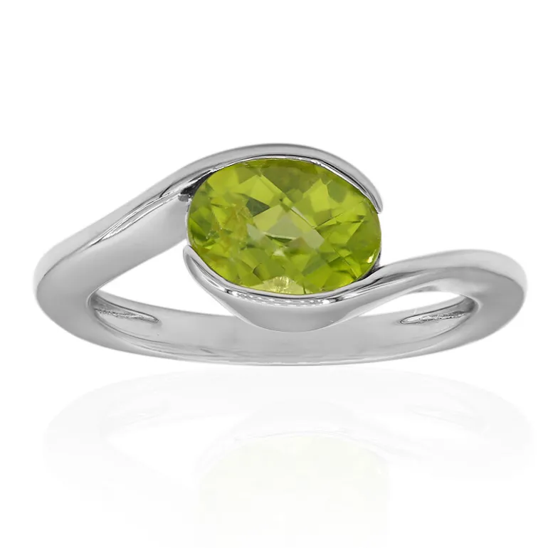 Platinplattierter 1,2ct Chinesischer Peridot Silberring