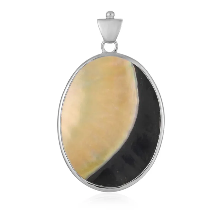 Entdecken Sie die Eleganz dieses schicken Silberanhängers mit exquisitem Perlmuttdesign. Inspiriert von Balis ikonischem Barong-Motiv, kombiniert dieses Stück kulturellen Charme mit modernem Stil. Mit einer Größe von 52×31 mm ist er sowohl für legere als auch für formelle Anlässe geeignet. Kombinieren Sie es mit einer schlichten Bluse für einen raffinierten Tageslook oder mit einem eleganten Kleid für einen eleganten Abend.