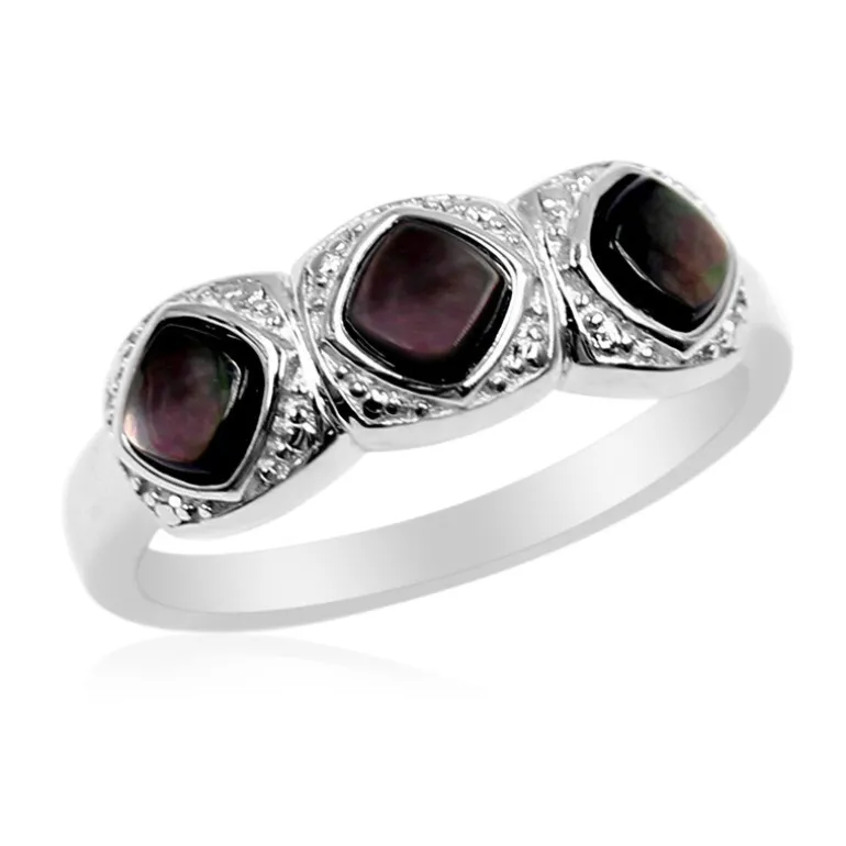 Entdecken Sie die schlichte Eleganz dieses Rings aus Sterlingsilber mit drei schimmernden Edelsteinen aus chinesischem Perlmutt, die jeweils in ein einzigartiges quadratisches Design gefasst sind. Die Zusammensetzung des Rings aus 925er Sterlingsilber unterstreicht seinen raffinierten Charme und macht ihn zu einer vielseitigen Ergänzung sowohl für legere als auch für formelle Anlässe. Perfekt für alle, die ihrer Schmucksammlung einen Hauch von Raffinesse verleihen möchten.