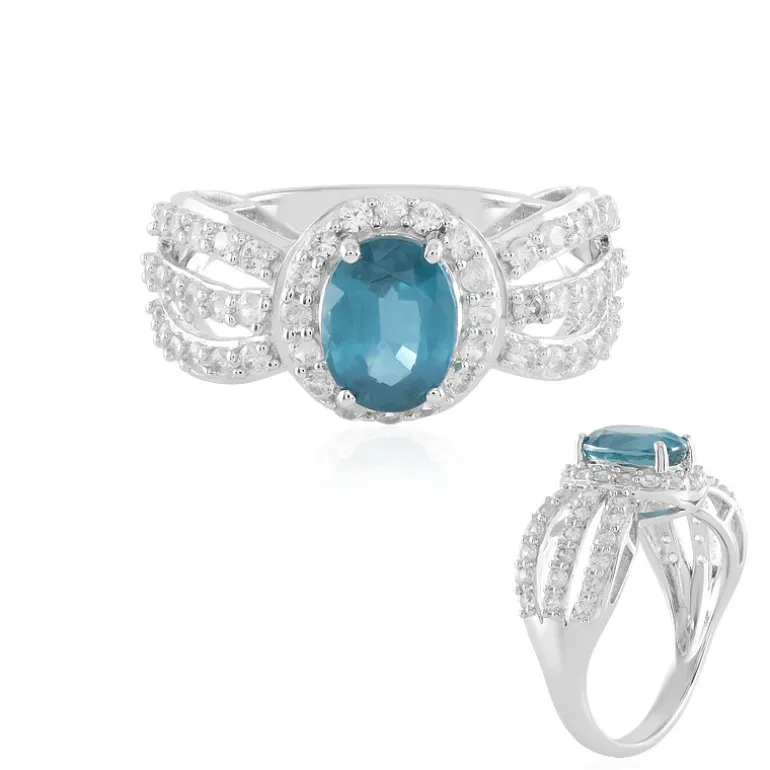Entdecken Sie die bezaubernde Anziehungskraft dieses Rings aus Sterlingsilber, der einen faszinierenden Petrol-Kyanit von 1,125 Karat aus Nepal in einem klassischen ovalen Schliff präsentiert. Der leuchtend blaue Farbton wird durch 52 funkelnde Zirkonsteine aus Kambodscha mit insgesamt 0,842 ct perfekt ergänzt. Mit einem Gesamtkaratgewicht von 1,967 Karat ist der aus hochwertigem 925er Sterling Silber gefertigte Schmuck eine exquisite Ergänzung für jede Sammlung. Das verschlungene Design des Rings vermittelt moderne Eleganz und eignet sich sowohl für besondere Anlässe als auch für den täglichen Chic. Dieser Ring verleiht Ihrem Outfit einen Hauch von Raffinesse.