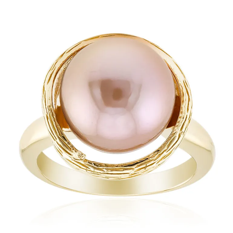 Pfirsich Ming Perle Vergoldeter Silber Ring, China 11.5mm