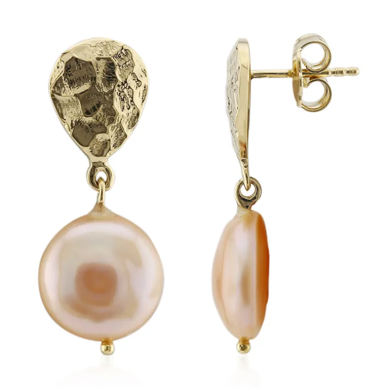 Pfirsich-Süßwasserperlen-Ohrringe aus vergoldetem Silber