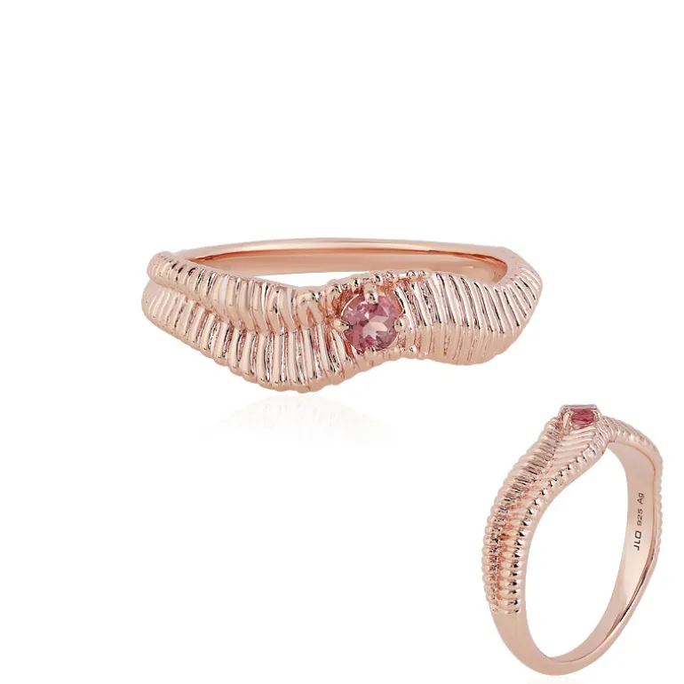 Entdecken Sie die bezaubernde Anziehungskraft dieses zarten Rings aus rosévergoldetem 925er Sterlingsilber, dessen Herzstück ein bezaubernder rosa Turmalin im Rundschliff aus Madagaskar ist. Der einzigartige 3 mm große Edelstein ist sorgfältig in ein wunderschön strukturiertes Band gefasst, das ein raffiniertes Rippendesign widerspiegelt, das ihm Tiefe und Charakter verleiht. Dieser Ring ist ideal, um jedem Ensemble einen Hauch von Romantik zu verleihen. Er sorgt für Gesprächsstoff bei geselligen Zusammenkünften und verleiht dem Alltagsoutfit einen eleganten Touch. Zelebrieren Sie Liebe und Eleganz mit diesem exquisiten Stück, das Leidenschaft und Stil ausstrahlt.