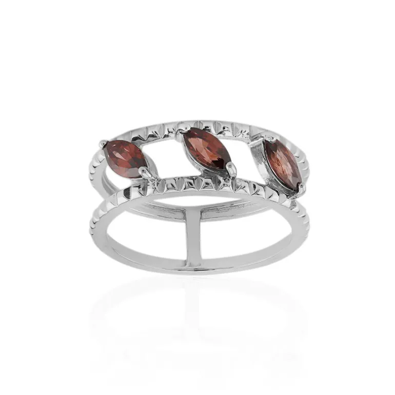 Entdecken Sie die Anziehungskraft dieses raffinierten Rings aus platiniertem Sterlingsilber, der mit drei rosa Zirkonen im Marquiseschliff aus Kambodscha von insgesamt 1,131 Karat besetzt ist. Jeder Zirkon verleiht dem Schmuckstück einen Hauch femininer Eleganz und ist harmonisch in ein schlankes Band mit einem Gewicht von ca. 2,55 g eingefasst. Dieser Ring ist ideal, um jedem Ensemble einen farbigen Akzent zu verleihen, und verspricht, eine geschätzte Ergänzung für jede Schmucksammlung zu sein.