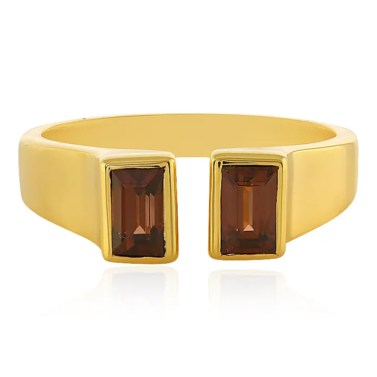 Dieser elegante Ring besteht aus zwei rosa Zirkonen aus Kambodscha, die im eleganten Baguetteschliff geschliffen sind und insgesamt 0,905 Karat wiegen. Das aufwendig vergoldete 925er Sterlingsilberband bildet einen warmen Kontrast zu den kühlen Tönen der rosa Edelsteine. Dieser Ring ist perfekt geeignet, um der Geschäftskleidung einen Hauch von Raffinesse zu verleihen oder die Abendgarderobe stilvoll zu ergänzen und strahlt moderne Eleganz aus.