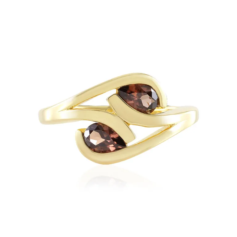 Wir präsentieren unseren Ring im wirbelnden Design mit zwei verführerischen rosa Zirkonen aus Kambodscha von insgesamt 0,916 Karat, die fachmännisch in Tropfenform facettiert sind. Das Band aus 925er Sterlingsilber ist in luxuriöses Gold getaucht und wiegt etwa 3,61 Gramm. Dieses kunstvolle Accessoire bringt die warmen Farbtöne der rosafarbenen Edelsteine zur Geltung, die durch den goldenen Schimmer anmutig ergänzt werden. Dieser Ring eignet sich perfekt, um Ihrer Abendgarderobe einen Hauch von Romantik zu verleihen, und wird bei jeder gesellschaftlichen Zusammenkunft für Gesprächsstoff sorgen.