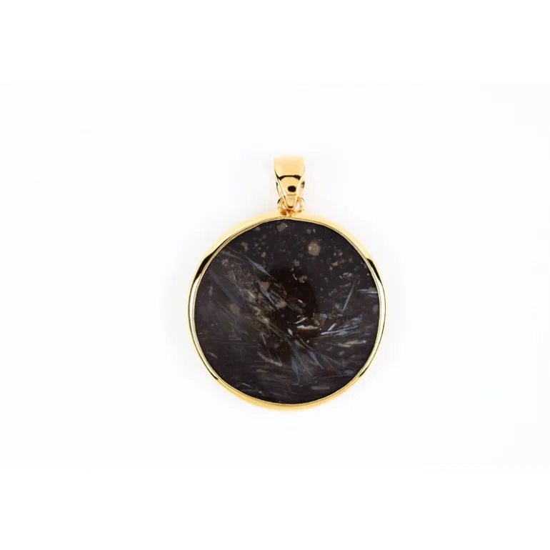 Wir enthüllen den indonesischen Prärie-Achat-Anhänger – Ihr neuer Prüfstein des Charmes. In feinem 925er Sterling Silber mit einer glänzenden Goldplattierung gefasst, besticht dieses kunstvolle Stück durch einen 35-karätigen, runden Achat im Cabochon-Schliff mit bezaubernden dunklen Farbtönen. Mit den Maßen 40×31 mm ist er ein exquisites Schmuckstück. Dieser Anhänger ist ideal, um sowohl der Alltagskleidung als auch besonderen Anlässen einen Hauch von Eleganz zu verleihen. Er ist ebenso vielseitig wie visuell fesselnd.