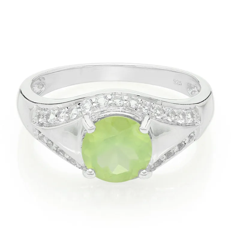 Australischer Prehnit & Weißer Topas Silberring, 2,03ct