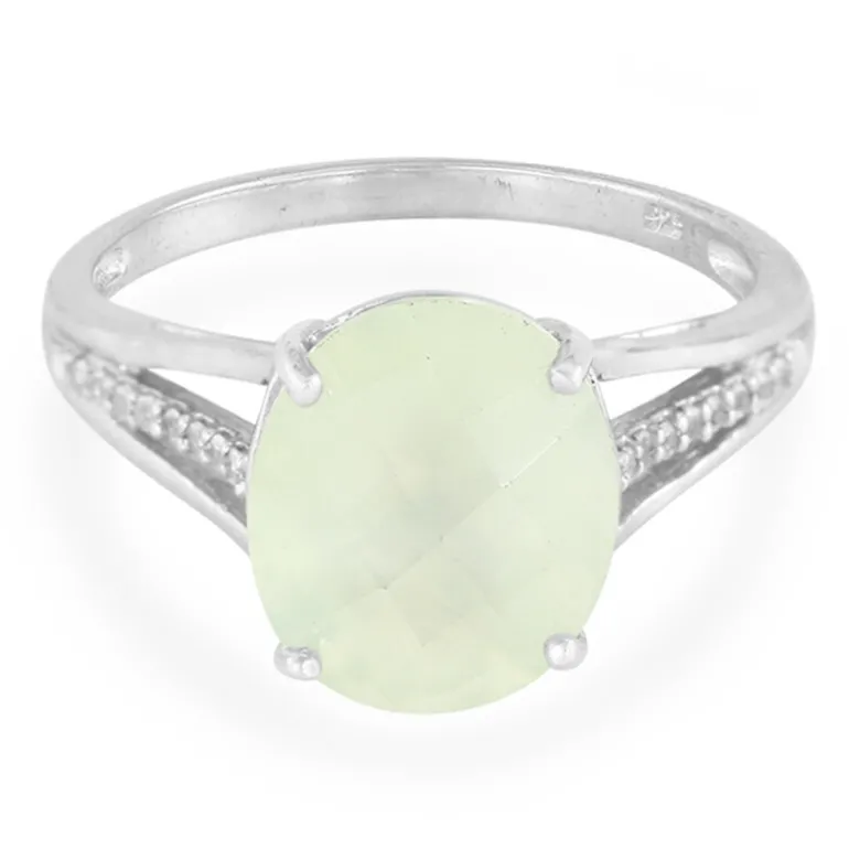 Entdecken Sie die kühle Eleganz dieses Rings aus australischem Prehnit, gekrönt von einem ovalen Edelstein im Schachbrettschliff mit 4,26 ct. Der pastellgrüne Farbton des Prehnit, eingefasst in 925er Sterlingsilber, harmoniert mit dem Funkeln von 16 brasilianischen Weißtopasen, die ihm eine subtile Brillanz verleihen. Mit einem Gesamtkaratgewicht von 4,344 ct ist dieses Schmuckstück ein reizvolles Accessoire für den Alltag oder eine dezente Ergänzung für die Abendgarderobe und passt sowohl zu lässigen als auch zu eleganten Looks.