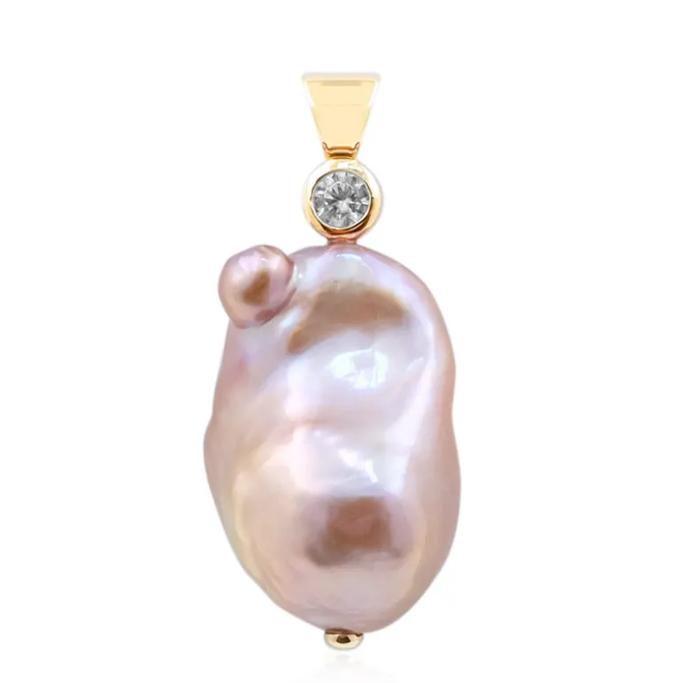 Dieser einzigartige Anhänger zeigt die bezaubernde Schönheit einer lavendelfarbenen Süßwasserperle, die von einer glänzenden 14-karätigen Goldfassung ergänzt wird. Die organische Form und das subtile Schillern der Perle strahlen eine natürliche Eleganz aus und machen sie zu einem idealen Accessoire sowohl für die Freizeit als auch für anspruchsvolle Anlässe. Darüber hinaus verleiht der brillante Akzentstein einen Hauch von Glamour – perfekt für alle, die einen Hauch von Luxus in ihrem Alltagsstil schätzen. Kombinieren Sie dieses Schmuckstück mit einer Vielzahl von Halsketten, um Ihren Look aufzuwerten.