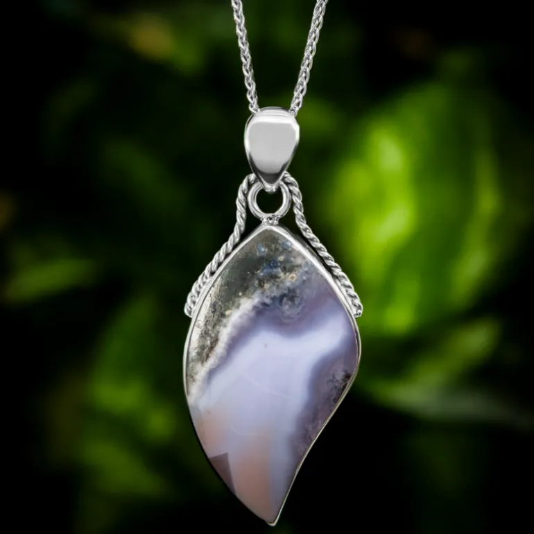 Entdecken Sie die Magie der indonesischen Kunst mit diesem 27-karätigen Anhänger aus violettem Chalzedon, der von dem mythischen Barong inspiriert ist. Der Anhänger aus hochwertigem 925er Sterlingsilber mit Platin-Finish zeigt die einzigartige Bänderung des Edelsteins in einem aufwendigen Fantasieschliff. Mit seinen Maßen von 35×20 mm ist er ein Statement der Opulenz. Egal, ob Sie sich für ein kulturelles Ereignis herausputzen oder ein schickes Abend-Outfit aufwerten, dieser Anhänger wird für Gesprächsstoff sorgen.