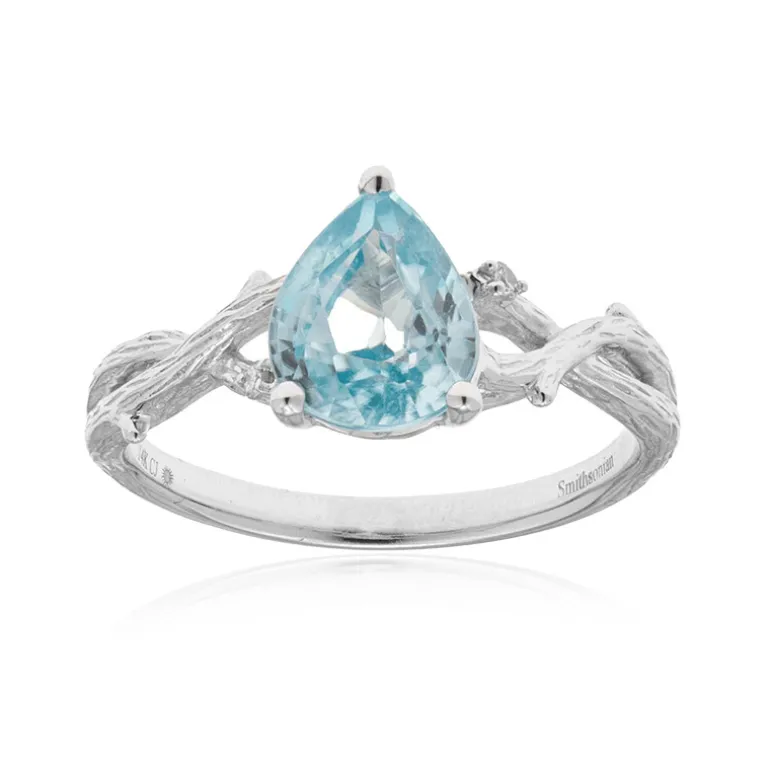Entdecken Sie die Anziehungskraft dieses fesselnden Rings aus 14 Karat Weißgold mit einem makellos geschliffenen 2,37-karätigen kambodschanischen Ratanakiri-Zirkon, der einen ruhigen blauen Farbton ausstrahlt, der an kristallklares Wasser erinnert. Neben diesem tropfenförmigen Mittelstück befinden sich zwei runde Brillanten, die zeitlose Eleganz mit einem Hauch von Funkeln verbinden. Dieses exquisite Schmuckstück besticht durch seine aufwendige Verarbeitung und ist die ideale Wahl, um besondere Momente zu markieren oder den Alltag zu verschönern.
