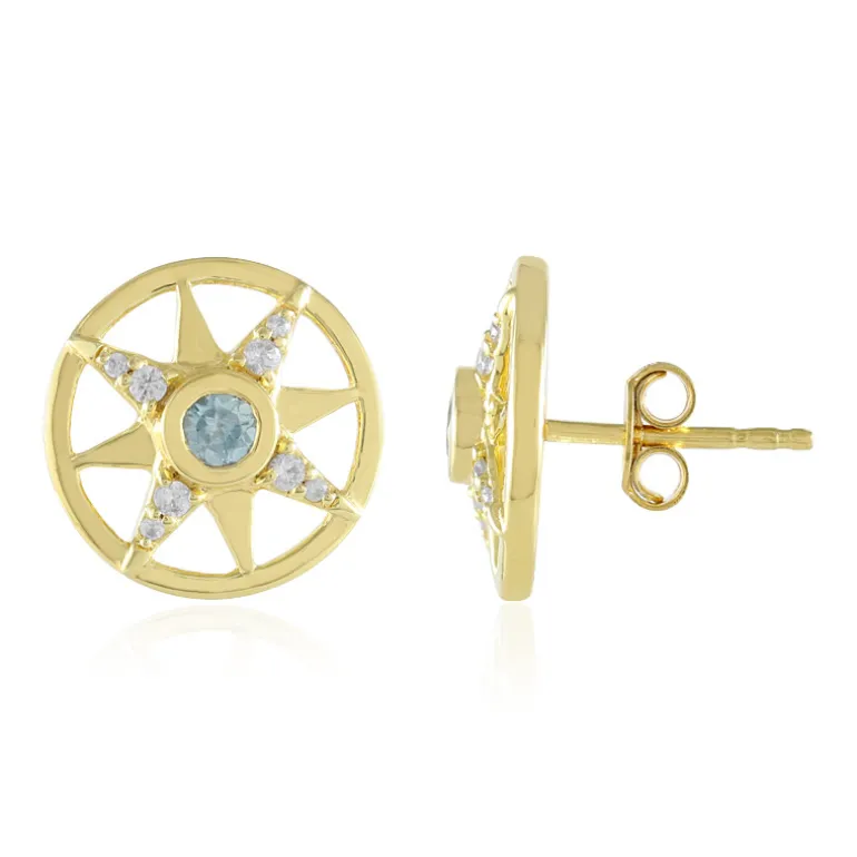 Entdecken Sie die Eleganz dieser Ratanakiri Zirkon Ohrringe, die kambodschanische Edelsteine in brillanten Rundschliffen präsentieren. Das vergoldete 925er Sterlingsilber unterstreicht die schimmernde Anziehungskraft der 0,442 Karat schweren Zirkone. Diese 14 mm großen Ohrringe eignen sich sowohl für das tägliche Tragen als auch für besondere Anlässe und verleihen jedem Ensemble einen Hauch von Raffinesse. Ideal für die Kombination mit Abendkleidern oder schicker Bürokleidung.