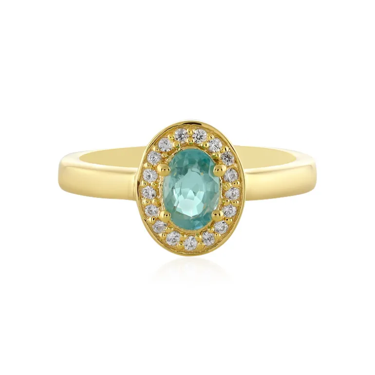 Schmücken Sie Ihre Hand mit dem subtilen Charme dieses vergoldeten Rings aus Sterlingsilber. Im Mittelpunkt steht ein ovaler Ratanakiri-Zirkon von 0,637 Karat aus Kambodscha, der für sein brillantes Funkeln und seinen bezaubernden meergrünen Farbton bekannt ist, umgeben von 17 glitzernden Zirkonen im Rundschliff von insgesamt 0,149 Karat. Dieses elegante Schmuckstück mit einem Gewicht von ca. 2,67 g eignet sich perfekt, um jedem Look einen Hauch von Raffinesse zu verleihen, sei es für den eleganten Alltag oder für besondere Abende. Mit einer Größe von 22×19 mm bietet der Ring einen angenehmen Tragekomfort und wird so schnell zum Lieblingsstück in Ihrer Sammlung.