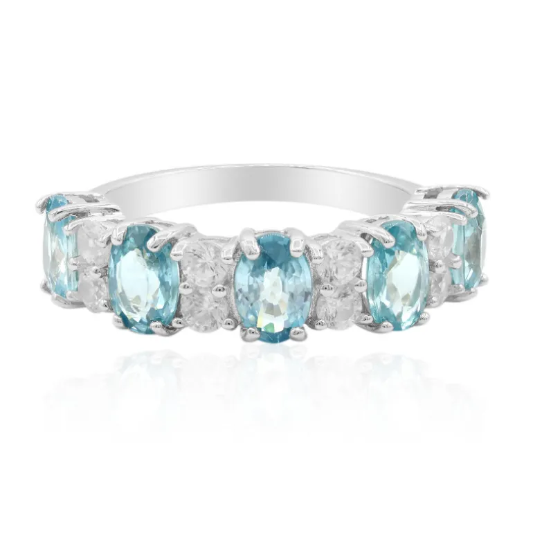 Erleben Sie die Anziehungskraft dieses atemberaubenden Silberrings mit fünf oval geschliffenen Ratanakiri-Zirkonen aus dem Herzen Kambodschas, die von acht funkelnden runden Zirkonen ergänzt werden. Die Fassung aus glänzendem 925er Sterlingsilber mit einem Gewicht von ca. 2,99 g umrahmt die Edelsteine mit einem Gesamtgewicht von 3,573 Karat auf elegante Weise und sorgt für ein Licht- und Farbenspiel, das Sie garantiert in seinen Bann zieht. Dieser Ring ist perfekt, um jedem Outfit einen Hauch von Raffinesse zu verleihen. Er ist ein Muss für alle, die die Schönheit von fein gefertigtem Edelsteinschmuck zu schätzen wissen. Er ist ideal für besondere Anlässe und eignet sich auch hervorragend als Geschenk für einen lieben Menschen.