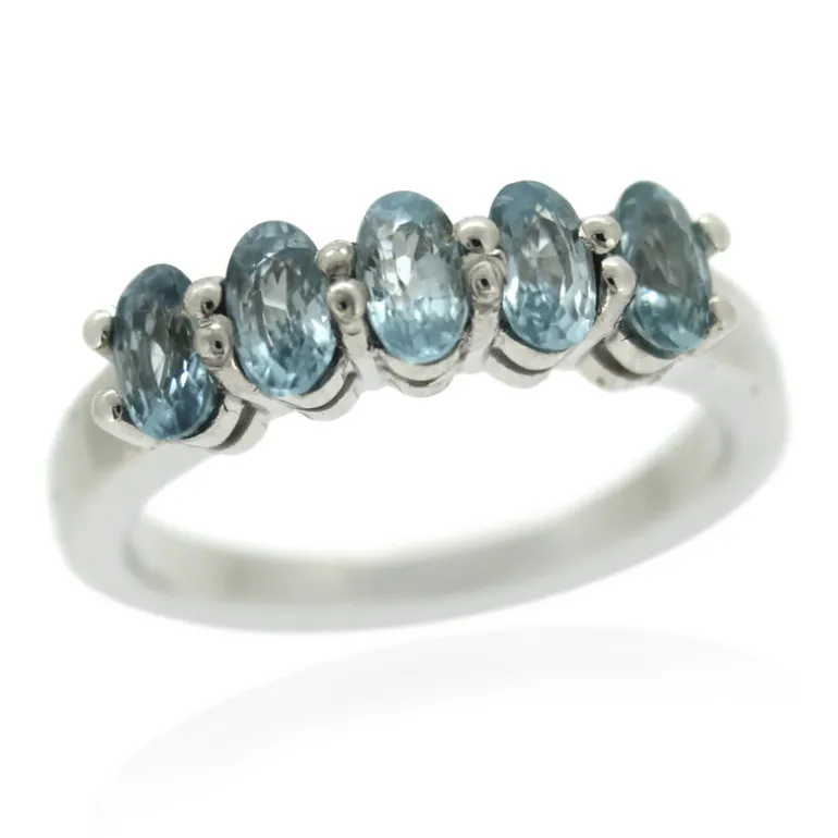 Entdecken Sie die Faszination des kambodschanischen Ratanakiri-Zirkons mit diesem auffälligen Ring aus Sterlingsilber. Mit einem Gesamtkaratgewicht von 1,539 ct. reihen sich fünf wunderschön facettierte, oval geschliffene Zirkonsteine zu einer bezaubernden Präsentation himmelblauen Glanzes aneinander. Das Band aus 925er Sterlingsilber unterstützt diese Edelsteine mit Schlichtheit und lässt ihre natürliche Pracht durchscheinen. Dieser Ring ist die ideale Wahl für das tägliche Tragen oder für gesellschaftliche Anlässe und wird für Gesprächsstoff sorgen. Kombinieren Sie ihn mit Ihren Lieblingsoutfits, ob leger oder elegant, um einen sanften Farbtupfer zu setzen.