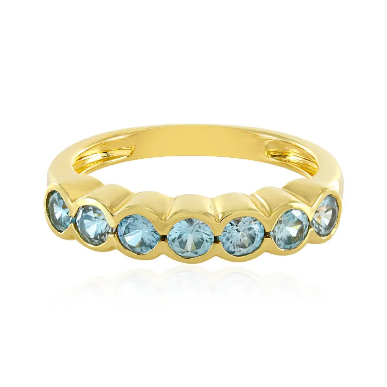 Dieser Ring aus vergoldetem 925er Sterlingsilber zeigt eine faszinierende Reihe von sieben Ratanakiri-Zirkonen im Brillantschliff aus Kambodscha mit einem Gesamtgewicht von 0,945 ct. Jeder 3 mm große Edelstein funkelt in einem Farbton, der an den klaren kambodschanischen Himmel erinnert. Das schlanke Design mit einer Größe von 21×20 mm umhüllt Ihren Finger mit Eleganz. Dieser Ring ist perfekt geeignet, um sowohl tagsüber als auch abends einen Hauch von Eleganz zu vermitteln, und verspricht, eine vielseitige Ergänzung für jede Schmucksammlung zu sein.