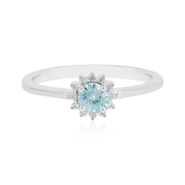 Entdecken Sie die eisige Anziehungskraft dieses exquisiten Zirkonrings aus Ratanakiri. Der strahlende zentrale Edelstein ist von einem Halo aus zwölf funkelnden Zirkonen umgeben, die alle aus den mineralreichen Böden Kambodschas stammen. Mit einem Gesamtkaratgewicht von 0,679 ct, gefasst in platiniertem 925er Sterlingsilber, bietet dieses schicke Stück einen Hauch von Eleganz, der jedes Outfit ergänzt. Das zarte Design und der sanfte blaue Farbton machen ihn zu Ihrem Lieblingsaccessoire für alle Gelegenheiten.