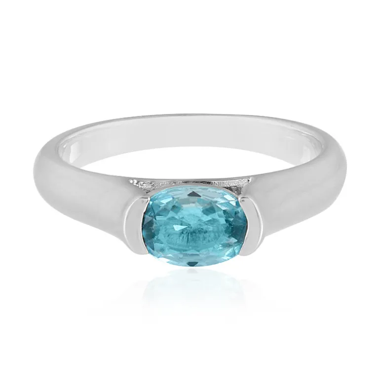 Entdecken Sie die Faszination des kambodschanischen Ratanakiri-Zirkons mit diesem ovalen Brillantschliff von 0,88 Karat, der elegant in einen Ring aus platiniertem 925er Sterlingsilber gefasst ist. Der ruhige blaue Farbton des Zirkons, der an tropische Gewässer erinnert, wird durch einen ca. 7 x 5 mm großen Edelstein ergänzt, der sich wunderschön vom Silberband abhebt. Dieser Ring eignet sich sowohl für Freizeitkleidung als auch für besondere Anlässe und verleiht jedem Outfit einen Hauch von Raffinesse.