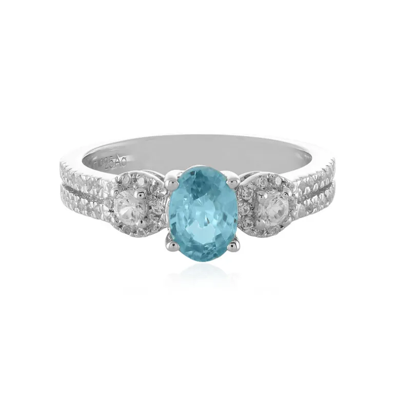 Entdecken Sie die Anziehungskraft dieses atemberaubenden Rings mit einem fesselnden ovalen Zirkon von 1,029 Karat aus Kambodscha, flankiert von 50 glitzernden Zirkonsteinen im Rundschliff von insgesamt 0,519 Karat. Der Ring ist aus 925er Sterlingsilber gefertigt, wiegt ca. 3,07 g und hat einen ruhigen blauen Farbton, der an den klaren Himmel erinnert. Sein elegantes Design mit den Maßen 23×21 mm eignet sich sowohl für einen lässigen Brunch als auch für einen eleganten Abend. Ein zeitloses Schmuckstück, das Sie Ihrer Sammlung hinzufügen können.
