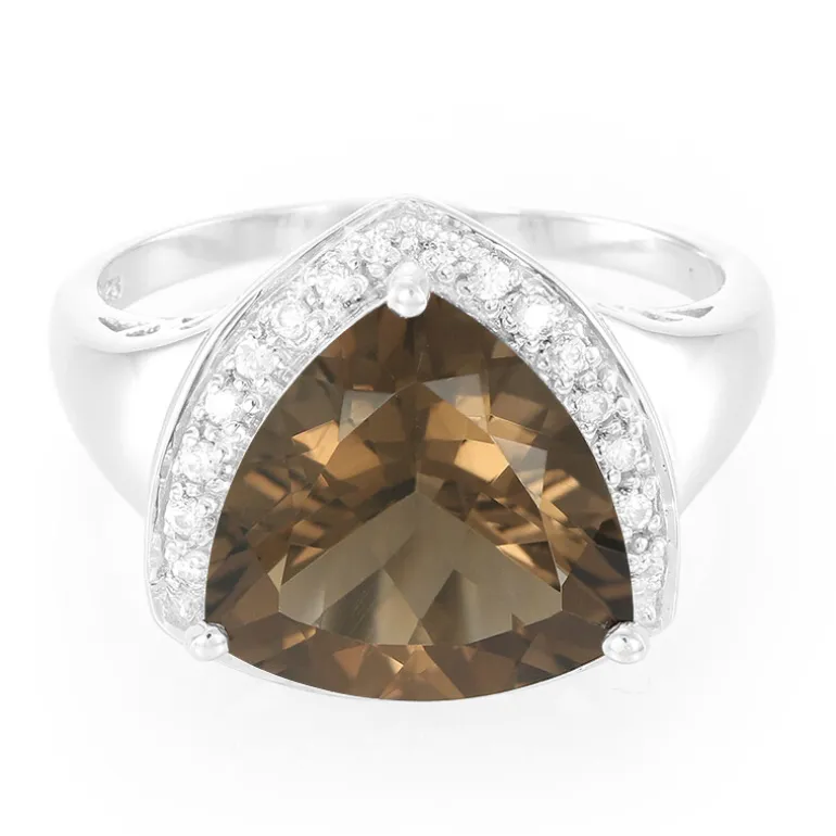 Entdecken Sie die Eleganz dieses Silberrings aus Rauchquarz mit einem atemberaubenden Edelstein im Billionenschliff von 4,24 Karat aus Brasilien. Akzentuiert mit funkelnden kambodschanischen Zirkonen, bietet dieses Stück einen raffinierten Touch zu jedem Outfit. Perfekt für besondere Anlässe oder einen gehobenen Alltagslook. Dieser Ring strahlt zeitlosen Charme und einen Hauch von Geheimnis aus und lässt sich wunderbar mit neutraler oder erdfarbener Kleidung kombinieren.