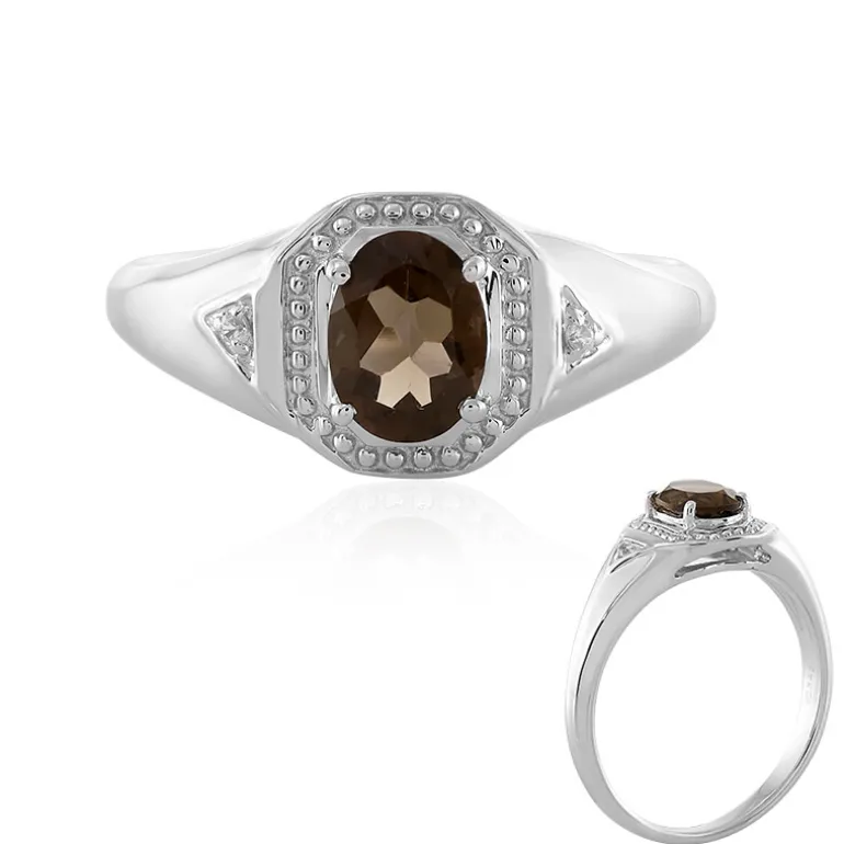 Dieser Ring aus Sterlingsilber umschließt auf elegante Weise einen brasilianischen Rauchquarz im Ovalschliff von 1,21 Karat, der für seine warmen, satten Farbtöne berühmt ist, flankiert von zwei kambodschanischen Zirkon-Akzenten. Dieses aus 925er Sterlingsilber gefertigte Schmuckstück verbindet den robusten Charme des Rauchquarzes mit dem subtilen Funkeln der Zirkone. Mit einem Gesamtgewicht von 1,243 Karat passt dieses luxuriöse und vielseitige Accessoire sowohl zu legerer als auch zu formeller Kleidung und verleiht jedem Ensemble einen Hauch von Raffinesse.