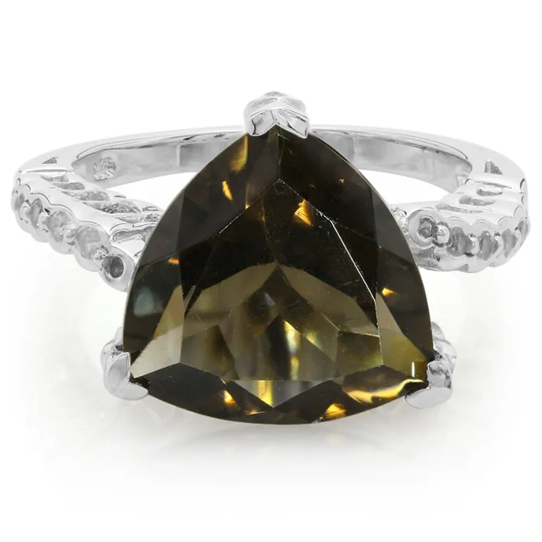 Brasilianischer Rauchquarz Trilliant Silber Ring, 5,05ct
