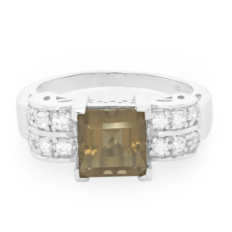 Entdecken Sie die Faszination dieses Rauchquarzrings aus 925er Sterlingsilber. Das Herzstück, ein brasilianischer Rauchquarz im Quadratschliff von 2,18 Karat, strahlt mit seinen tiefen, erdigen Farbtönen zeitlose Eleganz aus. Zwölf funkelnde Zirkone aus Kambodscha mit einem Gesamtgewicht von 0,617 ct, die den Rauchquarz mit strahlender Brillanz betonen, werten diesen Ring zusätzlich auf. Das Silberband mit einem Gewicht von ca. 3,38 g bildet eine robuste und zugleich raffinierte Grundlage für dieses exquisite Stück. Ideal für abendliche Anlässe oder um dem Alltag einen Hauch von Klasse zu verleihen.